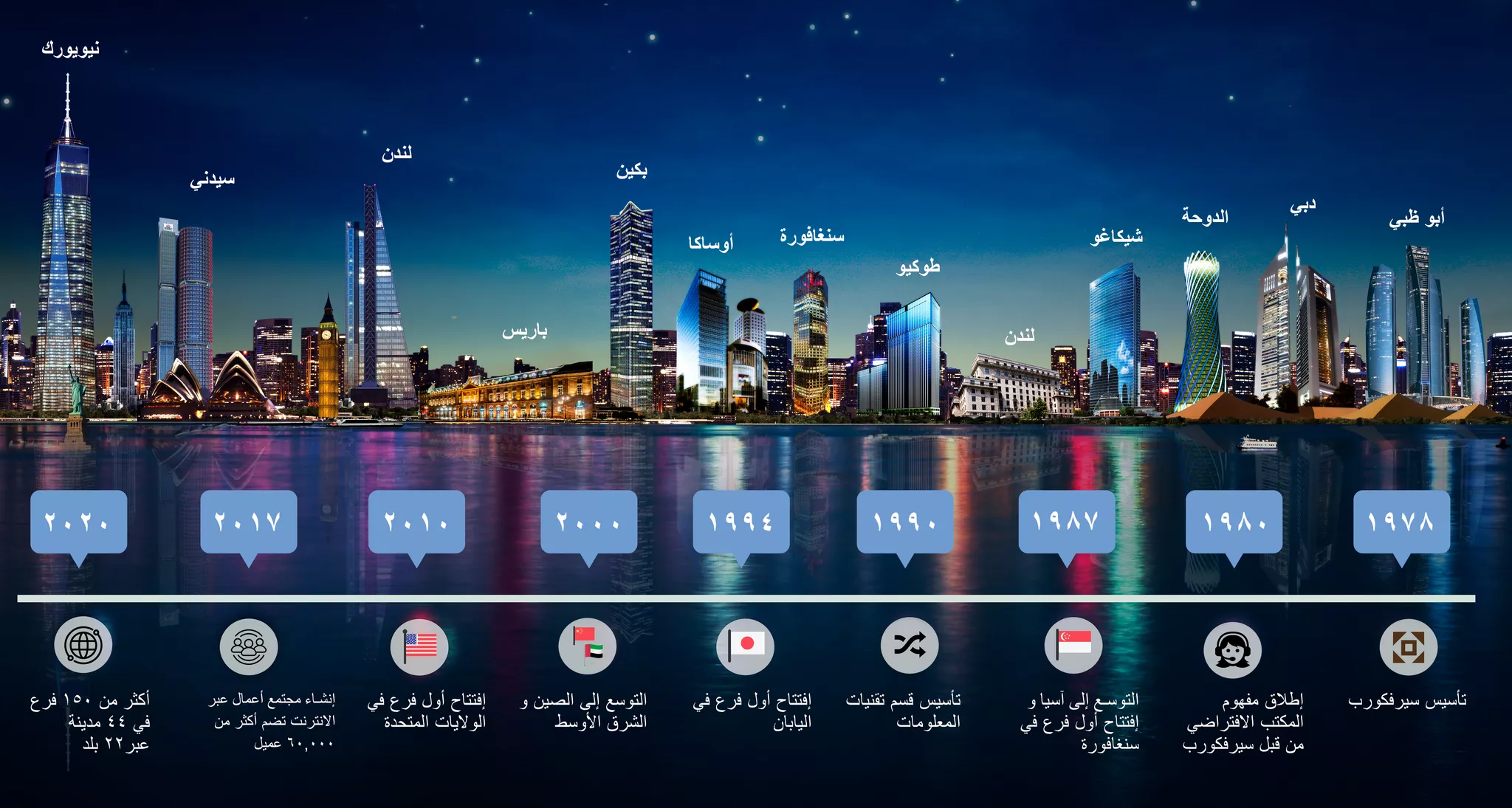 سوف تستمر سيرفكورب بالبحث عن الفرص المرموقة في البلدان الـ ٢٢ حيث تتواجد. كما من المحتمل أن نقوم بإضافة موقعين جغرافيين جديدين.